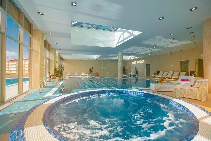 Закрытый бассейн отеля размером 76 кв.м. имеет глубину от 1,2 до 1,8 метров. Температура воды в нем также около 27 градусов.