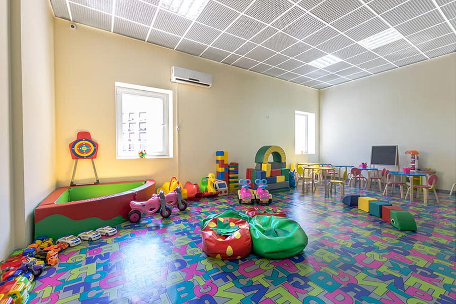 Детская комната оборудована интересными конструкторами, мягкими модулями и разнообразными играми, как для мальчиков, так и для девочек. Все игрушки, которые есть в детской комнате, соответствуют ГОСТ стандартам и регулярно проходят тщательную обработку.